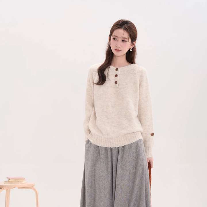 [Beau Muse] 韩系三粒扣羊毛毛衣